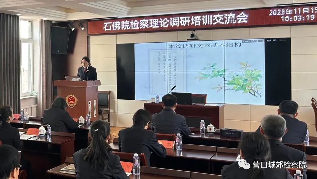 为切实提升检察理论调研实效,进一步提高干警检察理论调研文章撰写能力。2023年11月15日,营口市石佛地区人民检察院召开检察理论调研培训交流会,营口市人民检察院综合业务部主任解楠和检察官助理白墨应邀出席了会议,全院干警参会。