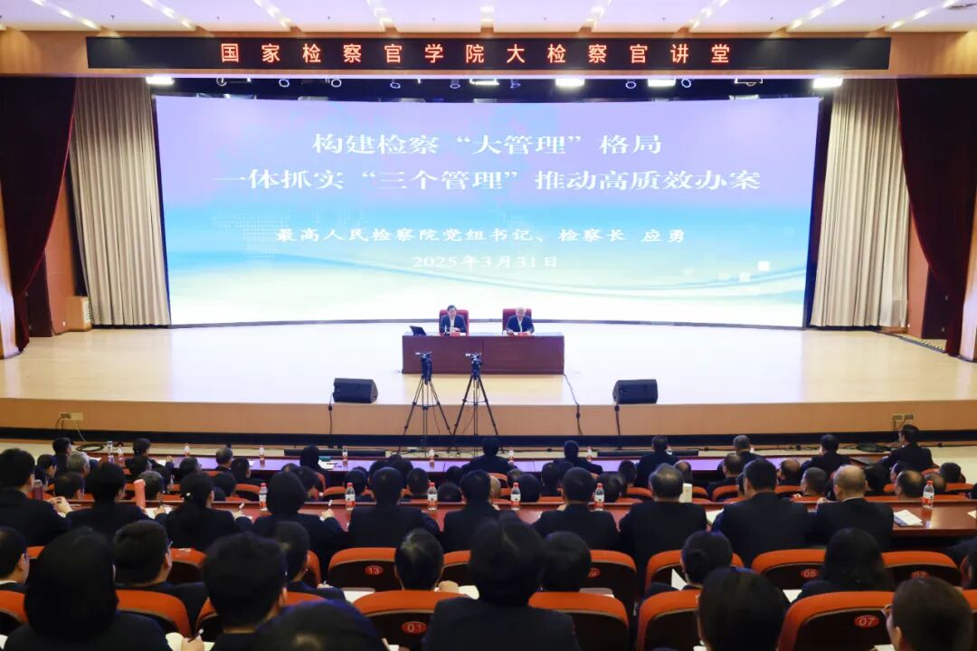 3月31日下午,最高人民检察院党组书记、检察长应勇来到国家检察官学院,为同期培训的5个班次650余名学员授课。他强调,检察管理是持续推进习近平法治思想的检察实践的重要内容和重要保障。要聚焦法律监督主责主业,遵循司法规律、管理规律,立足检察权运行特点,落实和完善司法责任制,着力构建检察“大管理”格局,一体抓实检察业务管理、案件管理、质量管理,与时俱进提升检察管理能力和水平,以高水平管理推动做实高质效办案,努力让人民群众在每一个司法案件中感受到公平正义。