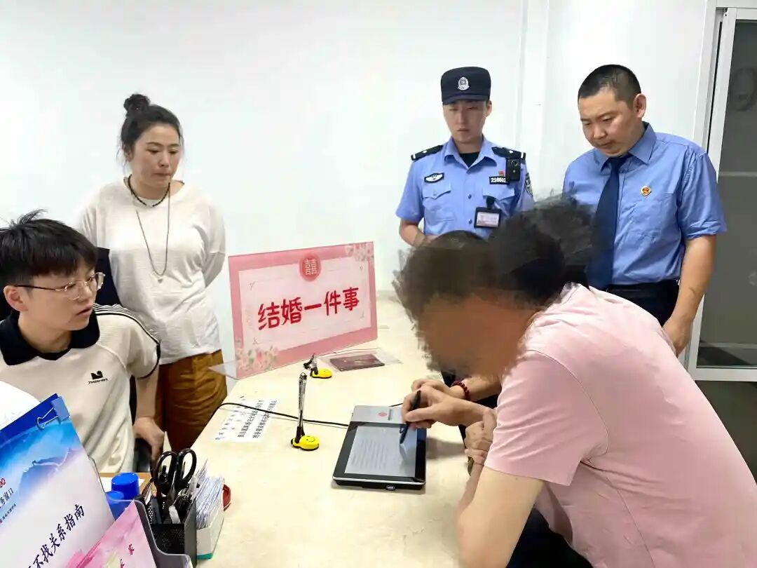 “复婚登记手续,两分钟顺利完成!”高考倒计3天,服刑人员徐某与妻子不禁泪湿前襟,女儿希望父母复婚的心愿“实现了”——6月4日12时,来自营口市石佛地区人民检察院、营口监狱和营口站前区民政事务中心(站前区婚姻登记处)的三组工作人员利用午休时间“协同合作”,见证了一场“特殊”的婚礼承载的司法温情和帮教力量。