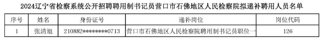 营口市石佛地区人民检察院拟递补聘用人员名单